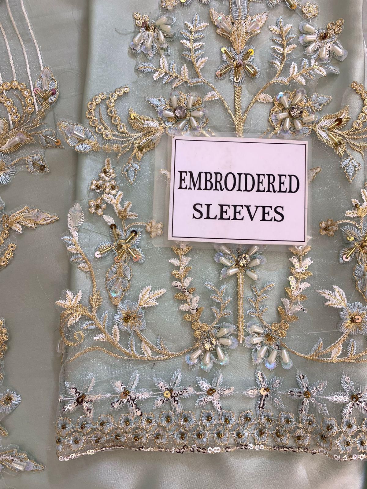 HEAVY EMBROIDED SEELEVES CUFF BUNCHES EMBELISH WITH GLORIOUS ADDA WORK COMBINATION