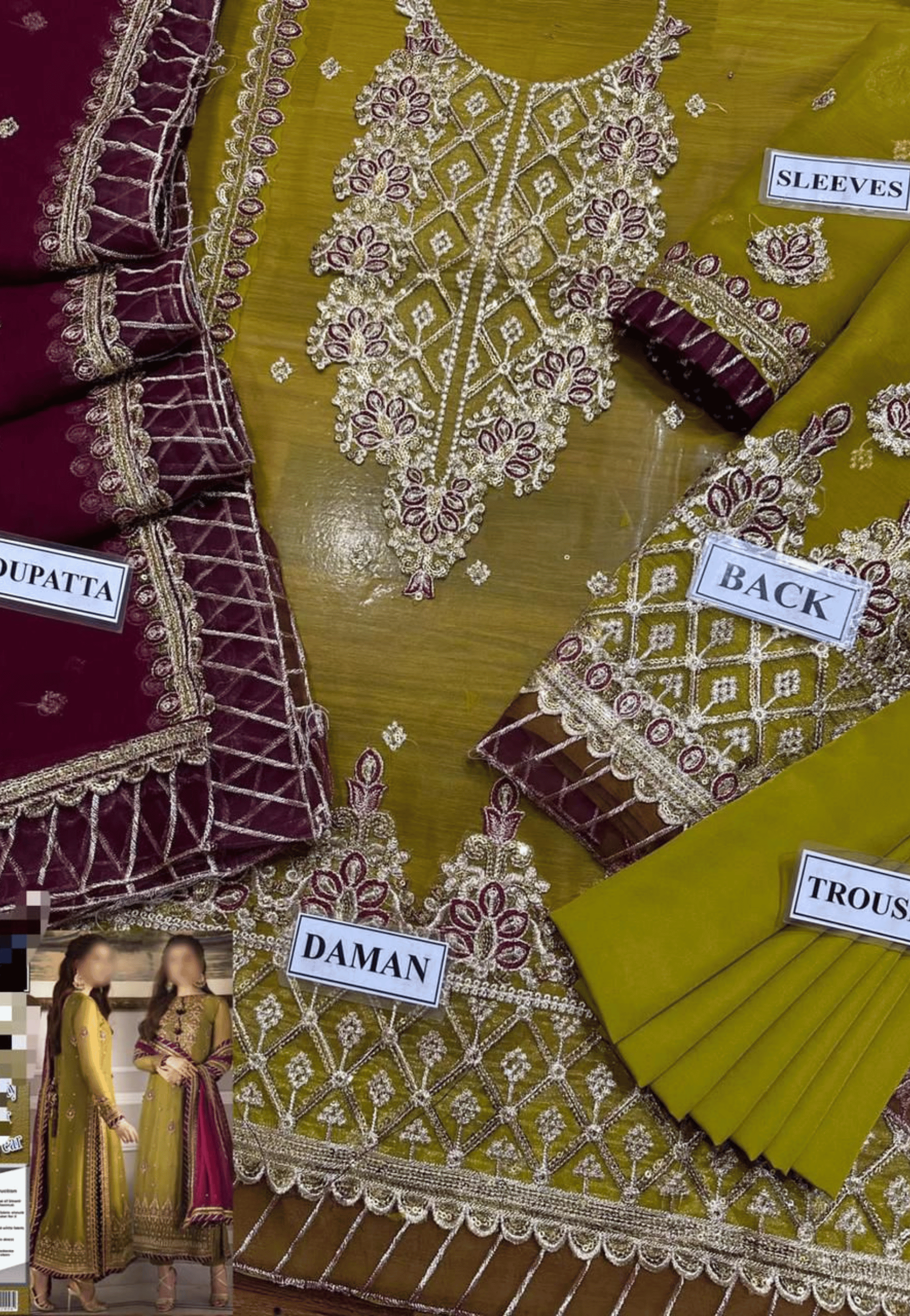 Mustard & Plum Embroidered 3-Piece Unstitched Suit
